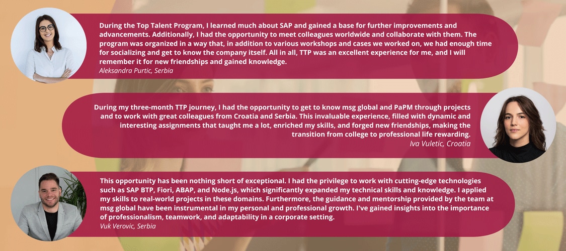 Top Talent program by msg global solutions aims to gather individuals who are willing to strive for excellence and groom their careers fast. We are looking for candidates who are ready to face various challenges within different environments, people, and cultures. Our program brings together the best students or graduates from technical faculties, mostly focused on information systems, technologies, with business mindset.